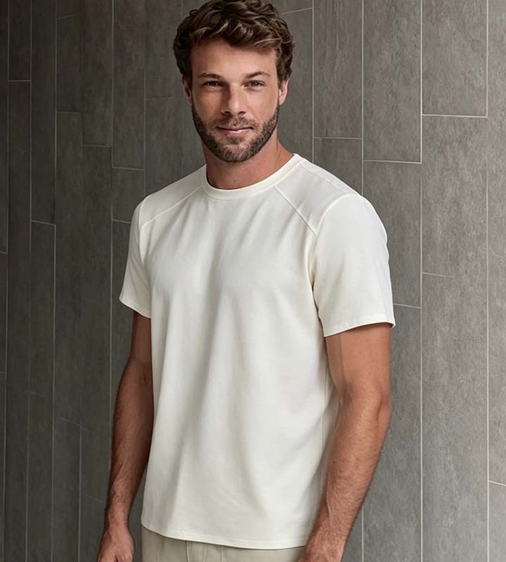 As nossas peças amassam bem menos do que as peças de algodão e outros tecidos comuns. E a grande vantagem é que não precisam ser passadas, porque desamassam rapidamente. Se chegarem amassadas, basta vesti-las — o calor do corpo vai fazer desamassar naturalmente.
